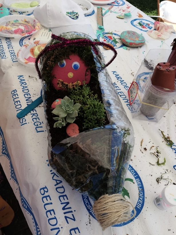 Karadeniz Ereğli Ören İlkokulu öğretmenleri, kurdukları geri dönüşüm atölyelerinde, atık malzemelerden harikalar yarattı. Ereğli Belediyesi'nce düzenlenen Çevre Şenliği'nde ürünlerini sergileyen ve atölye çalışmaları gerçekleştiren proje ekibinin eserleri beğeniyle izlendi.