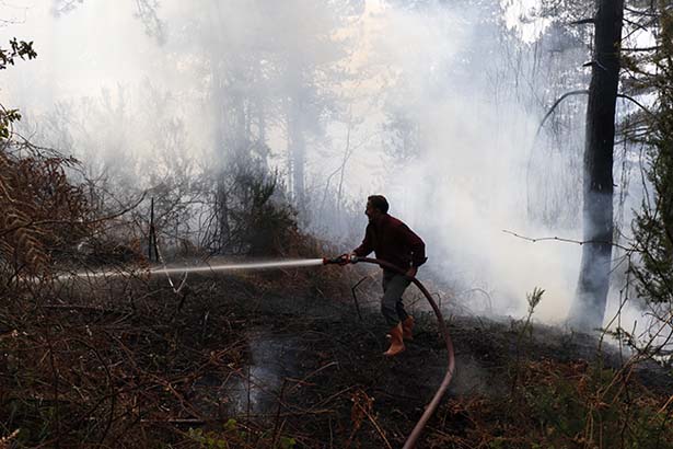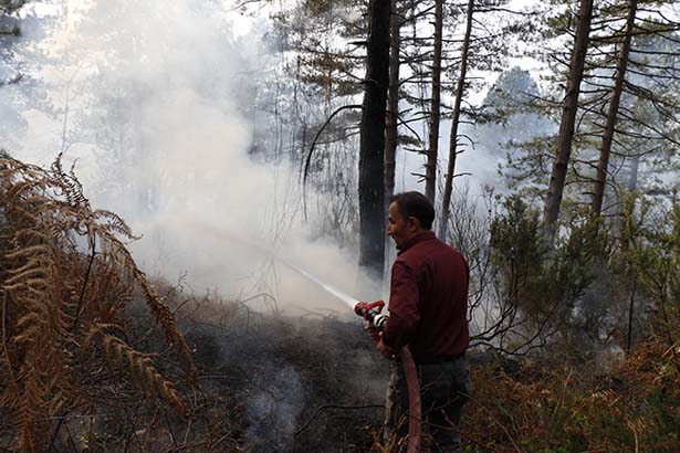 Yangına müdahale eden ekiplere destek veren köy sakinlerinden Harun Gökmen, "Köy kahvesinde oturuyorduk. Çamtarla mevkisinde yangın olduğu haberini alınca gerekli yerleri aradık. Yangına müdahale edildi. Bu mevsimlerde vatandaşların fındık bahçeleri var. Anız tabir edilen otları yakarken olmuş olabilir" diye konuştu.