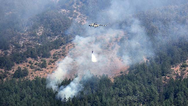 Karabük’ün Ovacık ilçesinde söndürme çalışmalarında 44 saati geride bırakan orman yangınına havadan ve karadan müdahale devam ediyor.