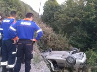 Zonguldak'ta direksiyon hakimiyeti kaybolan otomobil