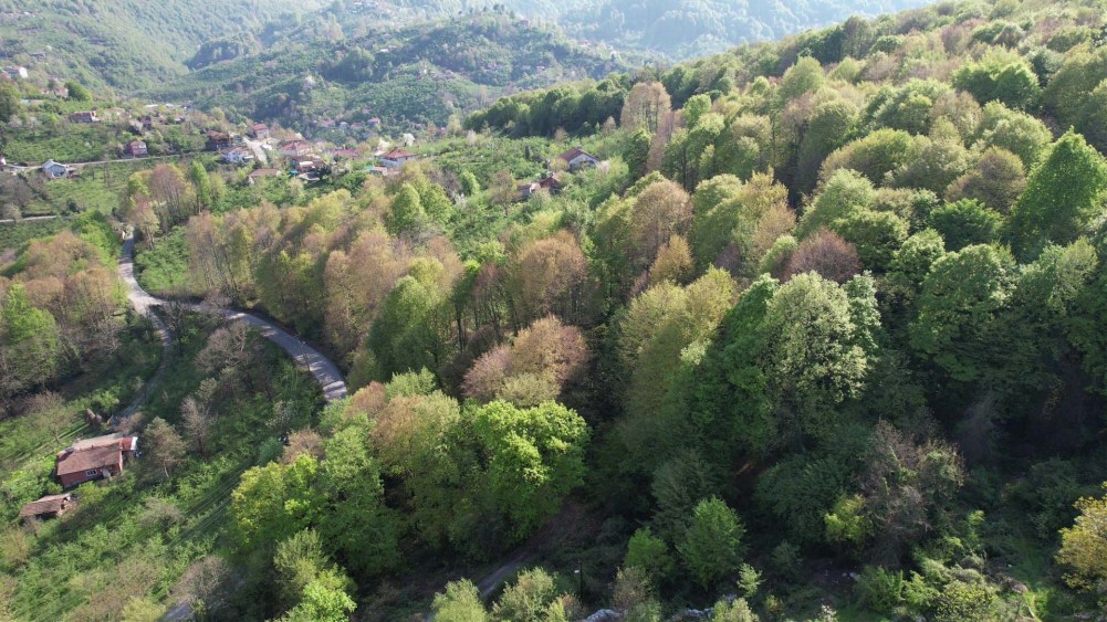 Zonguldak'ın biyolojik çeşitliliği ile zengin ormanları, baharın gelişiyle birlikte doğanın uyanışını gözler önüne seriyor. Güneşin tepede parladığı anlarda, bazı ağaçların kırmızı, bazılarının ise yeşil tonlara büründüğü muhteşem manzaralar dron ile havadan görüntülendi.