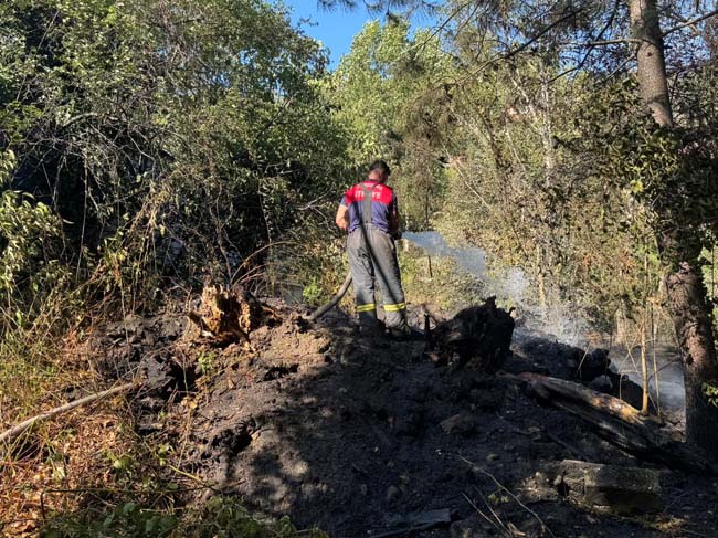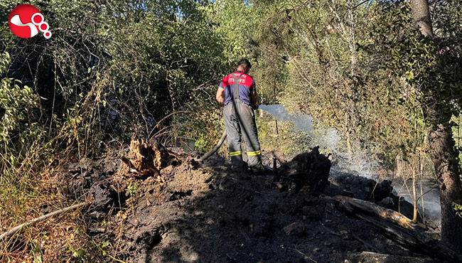 Ormanlık alanda çıkan yangın kısa sürede söndürüldü