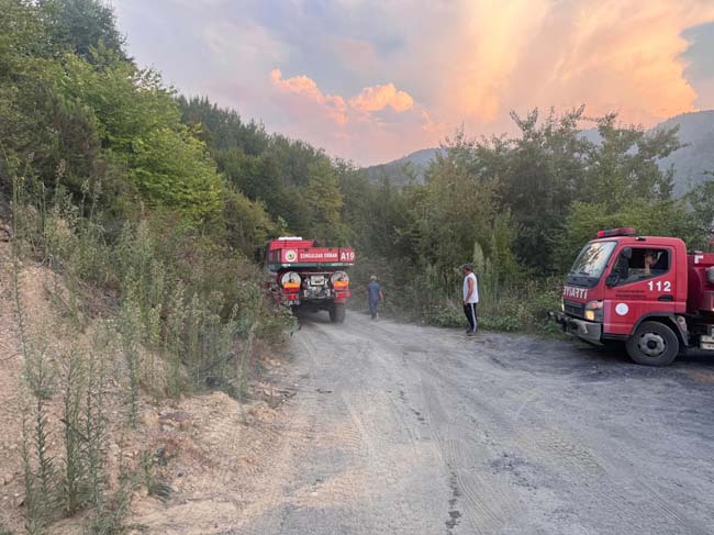 Zonguldak'ın Kilimli ilçesinde ormanlık alanda çıkan yangın ekiplerin müdahalesiyle kontrol altına alınarak soğutma çalışması yapıldı.