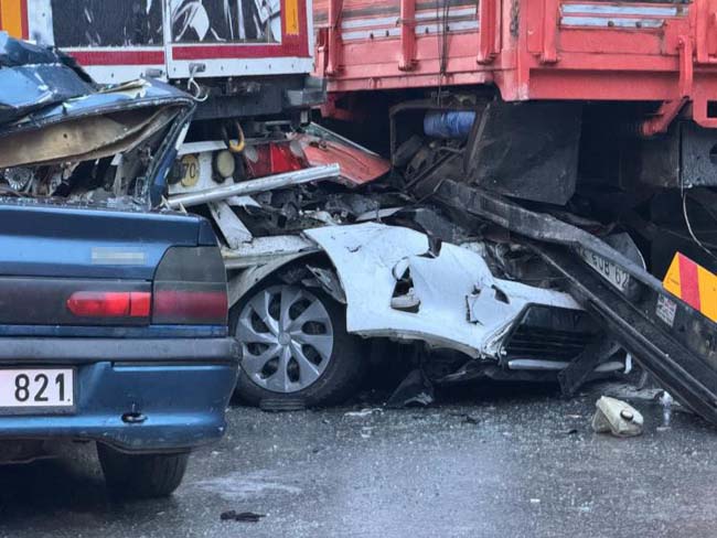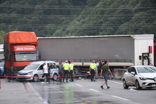Sakarya'nın Geyve ilçesi D-650 karayolunda 3 tır, 2 ticari araç, 2 otomobil ve 1 panelvan olmak üzere toplam 8 aracın zincirleme kazada 1 kişi hayatını kaybetti, 6 kişi yaralandı. Kaza sebebi ile kilometrelerce araç kuyruğunun oluştuğu bölgede, trafik yaklaşık 3 saat sonra tekrar açıldı.