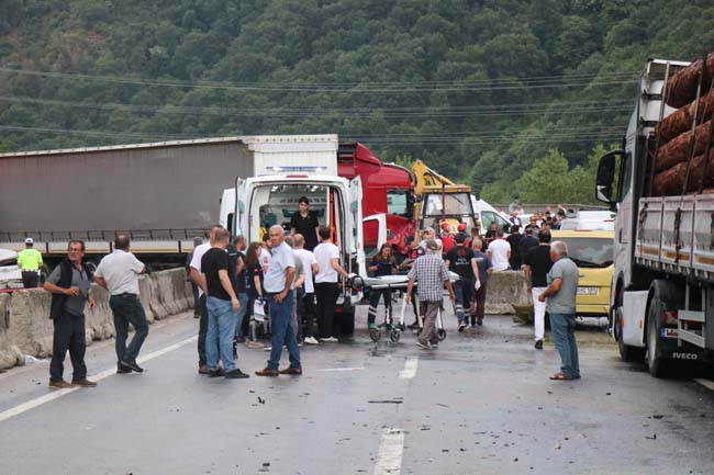 Kazada yaralananlar, adrese ulaşan sağlık ekiplerince yapılan ilk müdahalelerinin ardından çeşitli hastanelere kaldırıldı. Hayatını kaybeden sürücünün cansız bedeni, sıkıştığı yerden saatler süren çalışmanın ardından çıkarıldı. Ekiplerin uzun uğraşları neticesinde kazaya karışan araçlar yoldan kaldırıldı. Yaklaşık 3 saat süren çalışmaların ardından her iki istikamette trafiğe tekrar açıldı. Uzun araç kuyruklarının oluştuğu ve adeta savaş alanına dönen bölge havadan dron ile de görüntülendi.