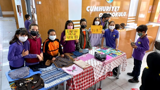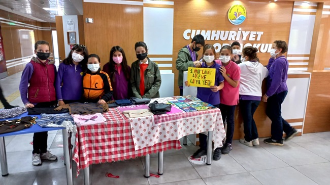 Yaptıkları görüşmeden çıkan ortak karar olan “evimizde az kullandığımız ve artık giyemediğimiz eşyalarımızı satışa sunalım” fikrini benimseyen öğrenciler, konuyu öğretmenleri ve okul idaresi ile paylaştılar.