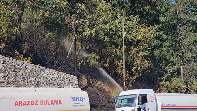 Ekiplerin bölgede söndürme çalışmalarının ardından soğutma çalışması yaptı.