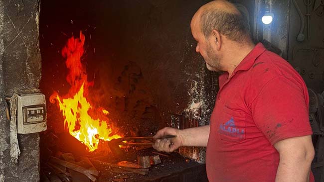 Durmuş, Osmanlı dönemi demir ustalarına dayanan dükkanda babasından devraldığı mesleği atölyede sürdürmeye çalıştığı bıçakların demir ve çiviyi rahatlıkla kesebildiğini belirtti. Durmuş, küçüklüğünden beri dedelerinden kalan ata mirası bıçakçılıkla ilgileniyor. Bıçakçı, "1861 doğumlu dedemin babasından bu yana 150 yıl ve 5 kuşak bıçakçılık mesleğini yapıyoruz. Yaklaşık 50 yıldır bu atölyemde balta, bıçak, kazma da ürettim. Bu yaşımıza kadar geldik, devam ediyoruz. Meslekte çırakta yetişmiyor. Biz ne kadar istesek de herkes masa işi istiyor. Bizde bu mesleği sürdürmekten mutluyuz. Şu görmüş olduğunuz bu bıçak bizim bölgenin fasulye bıçağı diye geçiyor. Yaklaşık 2 bin derecelerde bu ocak ısındıktan sonra bu dövülerek karbon şeklinde yapılıyor. Daha sonra kurban bayramında kullanılan bıçaklara geçtik. Bıçaklarınızın uzun yıllar kullanılmasını istiyorsanız. Özelikle dövülürken çekiç darbeleri çok önemlidir. Bıçak üretiminde çekiç darbesiyle bıçak şeklini alıyor. Önemli olan bıçağa suyunu vermektir. Bütün bu işlemler bittikten sonra en son kemik ya da fiberden yaptığımız sapları takarak satışa hazır hale getiriyoruz" diye konuştu.