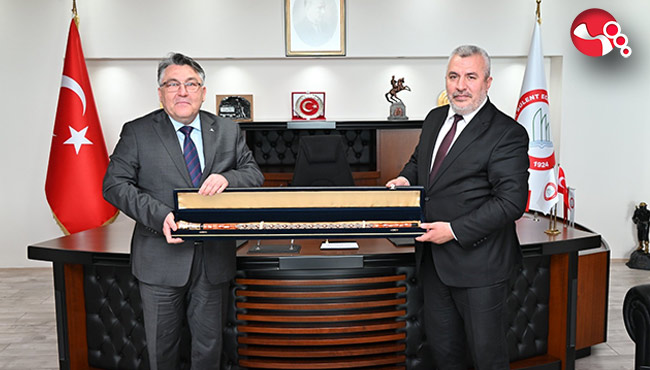 Ölçme, Seçme ve Yerleştirme Merkezi (ÖSYM) Başkanı Prof. Dr. Bayram Ali Ersoy, Zonguldak Bülent Ecevit Üniversitesi Rektörü Prof. Dr. İsmail Hakkı Özölçer’e ziyarette bulundu. Rektörlük makamında konuğunu ağırlayan Rektör Özölçer, Ersoy’un ziyaretinden duyduğu memnuniyeti dile getirerek konuklarıyla bir süre sohbet etti. Ersoy ise Rektör Özölçer’e misafirperverliğinden ötürü teşekkür etti.