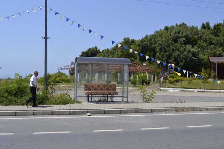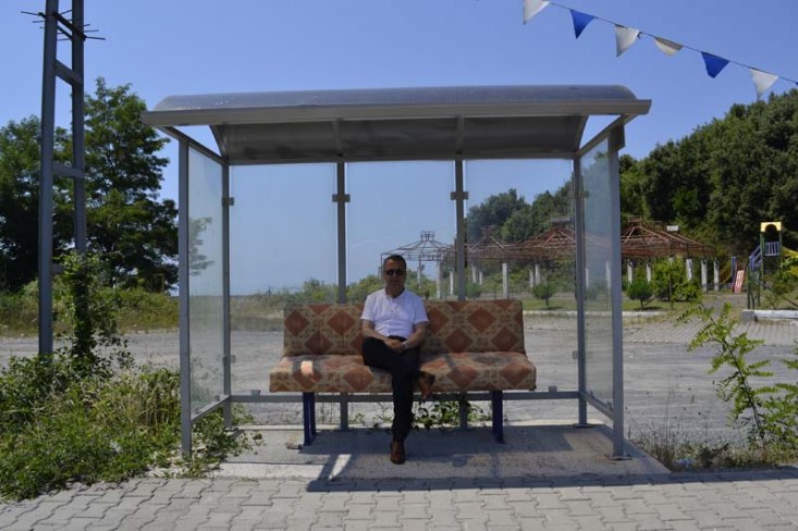 Zonguldak'ın Alaplı ilçesinde yat imalatı yapan Timur Arslan, kendi yaşadığı mahalledeki iki durağa bekleyenler rahat etsin diye kanepe yerleştirdi.