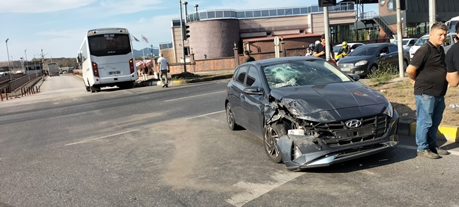 Otobüsle otomobil çarpıştı