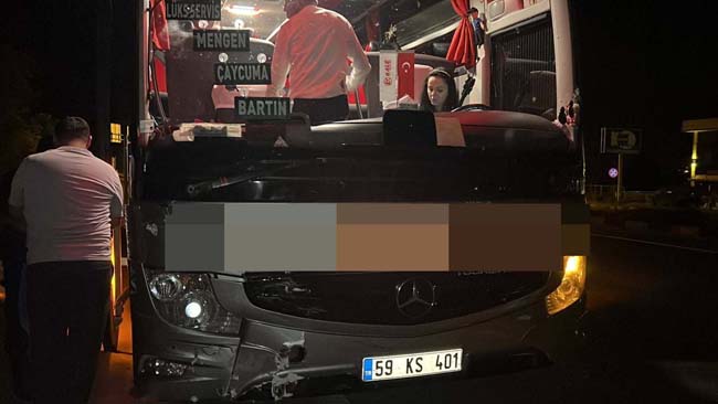 Edinilen bilgiye göre kaza gece saatlerinde Şahintepesi mevkisinde yaşandı. Devrek istikametine dönüş yapmak isteyen B.Ç. (48) idaresindeki 67 TS 025 plakalı otomobil ile S.G. (27) idaresindeki 59 KS 401 plakalı şehirlerarası yolcu otobüsü çarpıştı. Kazada otomobil sürücüsü B.Ç. ile otobüste bulunan 3 kişi yaralandı.