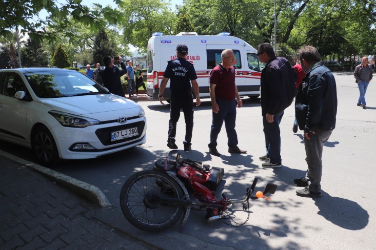 Zonguldak'ın Ereğli ilçesinde otomobilin çarptığı mobilet