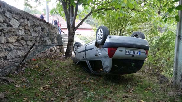 Kaza, Adatepe Mahallesi Kafkas Caddesi'nde meydana geldi. Irak uyruklu Kader A. (18) idaresindeki 78 MA 0280 plakalı Renault marka otomobil, sürücünün kontrolünü kaybetmesi sonucu 3 metre yükseklikten bahçeye uçarak ters döndü. Kazada sürücü ile Nebras M. M. (50) yaralandı. İhbar üzerine olay yerine itfaiye, AFAD, polis ve 112 Acil Servis ekipleri sevk edildi. Araçtan çıkartılan yaralılar, sağlık ekiplerinin ilk müdahalesinin ardından Karabük Eğitim ve Araştırma Hastanesine kaldırıldı. Tedavi altına alınan yaralıların sağlık durumlarının iyi olduğu öğrenilirken, kaza ile ilgili inceleme başlatıldı.