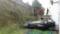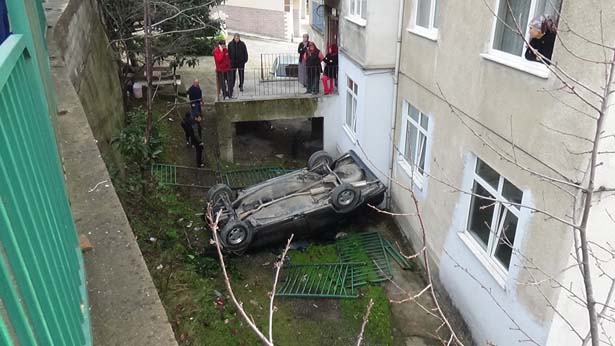 Alaplı'da meydana gelen trafik kazasında istinat duvarından aşağı uçan otomobilin sürücüsü araç içerisinde sıkıştı. Kaza, Alaplı ilçesi 1050 evler mahallesindeki A-4 Blok'un evin önünde meydana geldi. Edinilen bilgiye göre, hastane önünden yeni siteler istikametine gitmekte olan E. Y. idaresindeki otomobil, Aydınlık Caddesinde kontrolden çıkarak yaklaşık 7 metre yükseklikteki istinat duvarından aşağı düştü.
