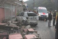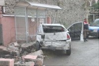 daha sonra duvara çarparak durabildiği, ters yöne giren otomobilin kazadan