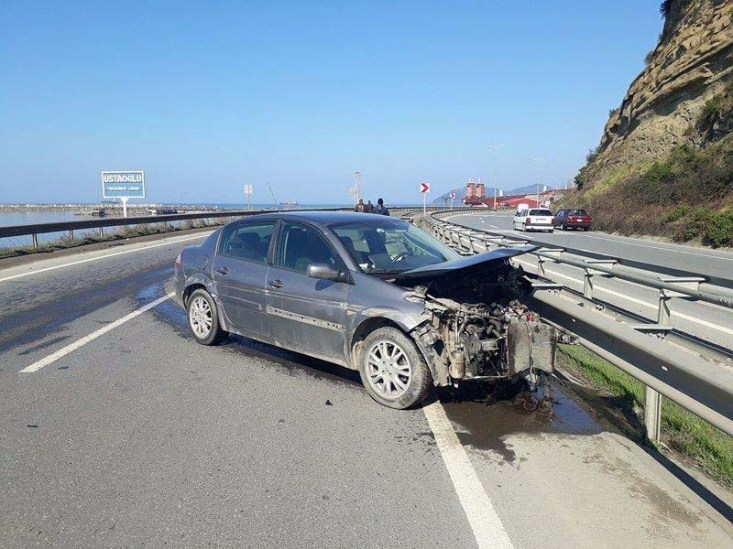 Kaza Ereğli Alaplı karayolu tersaneler bölgesinde meydana geldi. İddiaya göre Alaplı istikametine giden Hüseyin Şenol idaresinde ki 67 TU 580 plakalı otomobil sürücüsünün direksiyon hakimiyetini kaybetmesi sonucu bariyerlere çarptı. Hurdaya dönen otomobil sürücüsü kazayı yara almadan atlatırken, araçta yolcu olarak bulunan Yılmaz Yüksel ise hafif yaralandı. Yaralı Yüksel' e sağlık ekipleri müdahale ederken, hurdaya dönen otomobil çekici ile kaza yerinden kaldırıldı. Polis kazayla ilgili tahkikat başlattı.