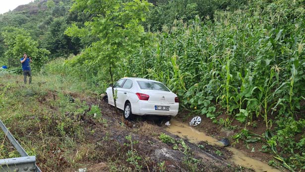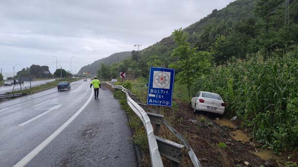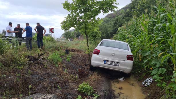 Edinilen bilgilere göre, kaza, Alaplı- Akçakoca- karayolu Belediye Plajlar mevkiinde meydana geldi. Fatih M. yönetimindeki 67 UB 358 plakalı Citröen marka otomobil, Belediye Plajlar mevki kavşağında yağışlı havada sürücüsünün direksiyon hakimiyetini kaybetmesi sonucu kontrolden çıkarak yol kenarındaki su kanalına uçtu. Meydan gelen kazada sürücü yalandı. Yaralı sürücü kaza yerine çağrılan ambulansla hastaneye kaldırılarak tedavi altına alındı. Kazayla ilgili olarak başlatılan soruşturma sürüyor.