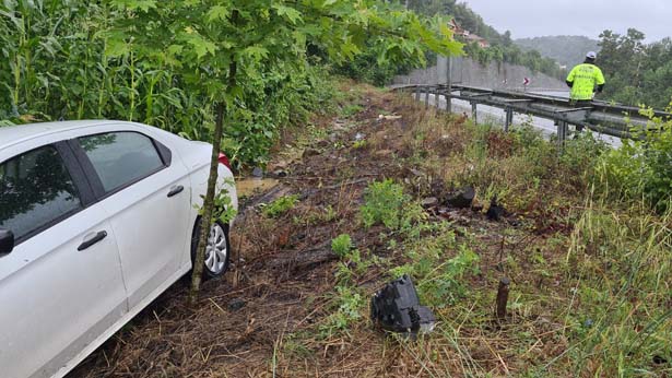 Zonguldak Alaplı ilçesinde yağmur nedeniyle kayganlaşan yolda sürücüsünün kontrolünden çıkan otomobil su kanalına uçtu. Kazada 1 kişi yaralandı