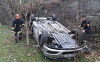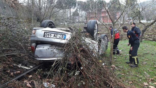 çıkarak takla attı. Ters dönen otomobilde bulunan sürücü Kerem Y. ile yanında