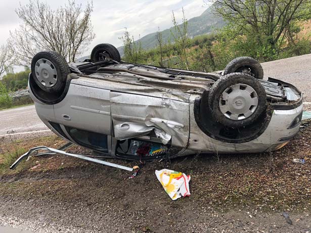 Girdi'nin aracı yan yatarak tek taraflı kaza meydana geldi. Olayı görenler