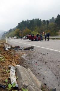 Zonguldak'ta bir otomobilin orta refüje çarpıp takla atması sonucu meydana gelen kazada, araçta bulunan 4 kişi yaralandı.