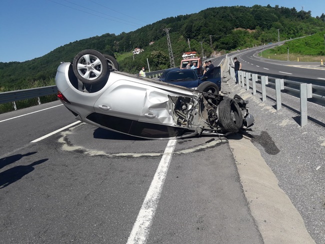 Olay 08.20 sularında ilçeye bağlı Zonguldak Yolu Üçköy yol ayrımında meydana geldi. İddiaya göre 34 TZ 1012 plakalı otomobil sürücüsü direksiyon hakimiyetini kaybetmesi sonucu takla attı. Kaza sonucunda sürücü ve yanındaki yolcu yaralandı. Çevreden geçen diğer araç sürücüleri durumu 112 sağlık ekiplerine haber verdi. Bölgeye kısa sürece ulaşan 112 sağlık ekipleri yaralılara ilk müdahaleyi yaptıktan sonra hastaneye kaldırdı. Trafiğe kısa süre kapanan yol çekici ile otomobilin çekilmesiyle trafiğe açıldı. Olayla ilgili soruşturma başlatıldı.