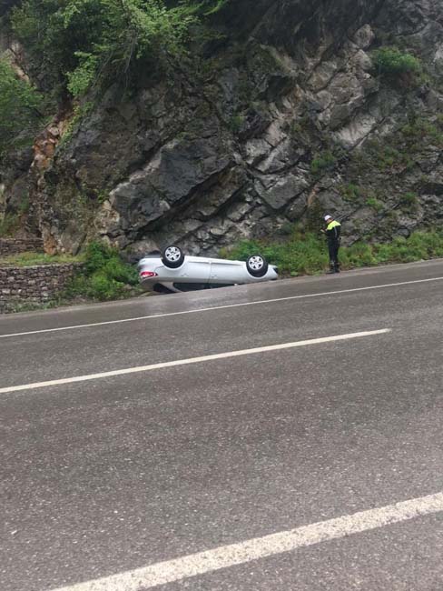 Edinilen bilgiye göre kaza sabah saatlerinde Zonguldak-Çaycuma karayolu Zonguldak istikametinde meydana geldi. Nevzat D. (60) idaresindeki 67 TR 228 plakalı otomobiliyle seyir halindeyken havanın yağışlı yolun da ıslak olması sebebiyle kaza yaptı. Ters dönen otomobilde yaralanan sürücünün imdadına çevredeki vatandaşlar yetişti. Olay yerine çağrılan sağlık ekiplerinin ilk müdahalede bulunduğu yaralı sürücü ambulansla Atatürk Devlet Hastanesi'ne kaldırıldı. Sürücünün sağlık durumunun iyi olduğu öğrenildi. Kazayla ilgili başlatılan soruşturma sürüyor.