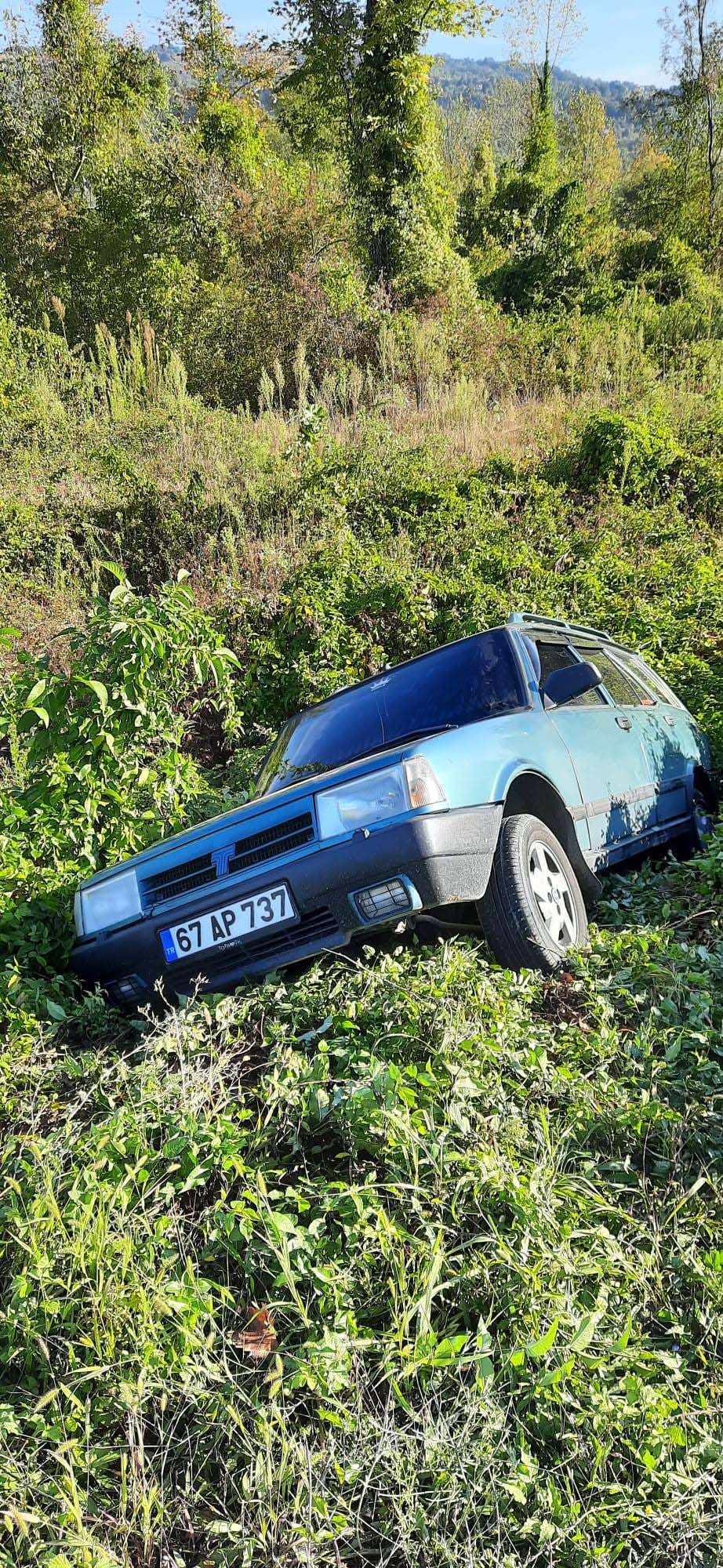 Zonguldak'ın Gökçebey ilçesinde sürücüsünün direksiyon hakimiyetini kaybettiği otomobil tarlaya uçtu.