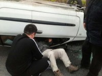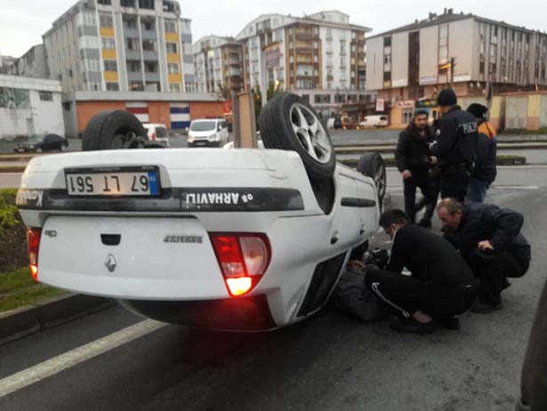 OTOMOBİL TERS DÖNDÜ....