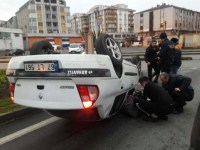 Zonguldak'ın Ereğli ilçesinde iki otomobilin çarpışması sonucu meydana gelen trafik kazasında bir kişi yaralandı. Kazada ters dönen otomobil sürücüsü vatandaşların ve olay yerine gelen itfaiye ekipleri tarafından çıkarıldı.