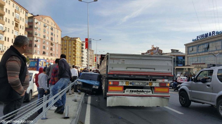 Kaza Müftü Mahallesi Ömer Halisdemir bulvarında meydana geldi. İddiaya göre Devrek yol ayrımı istikametine giden ve makas atan 57 AF 771 plakalı otomobil sürücüsü Efkan Demircan'ın kullandığı otomobil, sollama yaptığı sırada Şinasi Bozkurt'un kullandığı 67 UA 394 çekici 67 TV 295 çekici plakalı TIR ile çarpıştı. Kazada yoldan çıkan otomobil TUR ile bariyerlerin arasına sıkıştı. Sürücü Demircan otomobilden vatandaşların yardımı ile çıkartılırken, otomobil kullanılamaz hale geldi. Sürücü Efkan Demircan kazayı yara almadan atlatırken, yaklaşık yarım saat tek şeritten verilen trafik, araçların çekici ile kaza yerinden kaldırılmasıyla normale döndü.