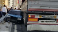 OTOMOBİL TIR İLE BARİYERLERİN ARASINDA SIKIŞTI...
