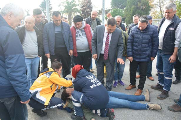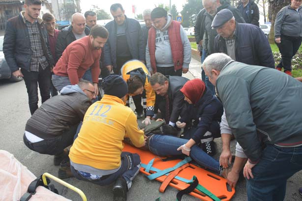 Zonguldak'ın Ereğli ilçesinde yolun karşısına geçmeye çalışan kadına otomobil çarptı. Kazada yaralanan kadına ilk müdahaleyi Ereğli Belediye Başkanı Op. Dr. Hüseyin Uysal yaptı.