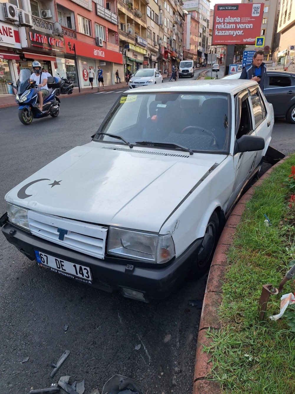 Karadeniz Ereğli ilçesinde kavşağa giren tır, aynı istikametteki otomobili refüje sıkıştırarak ezdi.