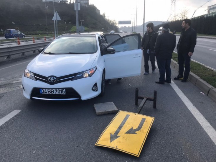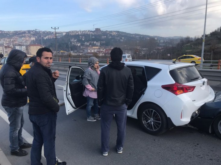 Kaza Elmatepe çıkışı üst köprü girişinde meydana geldi. İddiaya göre çarşı istikametine giden34 BB 7015 plakalı otomobili kullanan bayan sürücü yoldaki elektrik kurumu tarafından yapılan çalışma dolayısıyla tabelaları fark edemeyerek çarptı. Çarpmanın etkisi ile aniden duran otomobile arkadan gelen T.M. nin kullandığı 06 P 5667 plakalı otomobil çarptı. Kazada yaralanan olmazken araçlarda büyük çapta maddi hasar meydana geldi. Bayan sürücü ve araçta bulunan çocuğunun korktuğu kazada hasar gören araçlar çekici ile olay yerinden kaldırıldı.