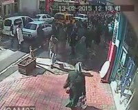 çocuğa çarptı. Çarpmanın etkisiyle kaldırıma fırlayan çocuk çevredekilerin