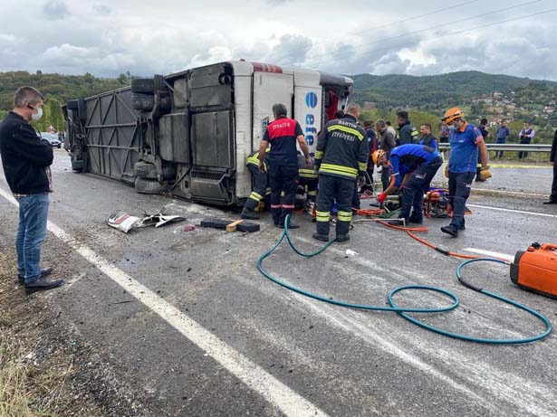 Otomobille çarpışan yolcu otobüsü devrildi: 3 ölü, 1 yaralı