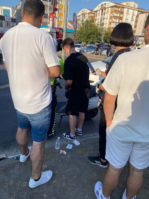 Otomobille motosiklet çarpıştı!