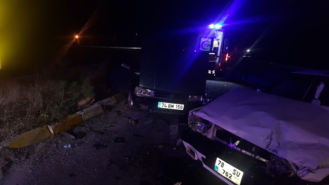 Alınan bilgiye göre kaza, akşam saatlerinde Devrek ilçesi Kelebekler Vadisi Uzunyurt mevkinde meydana geldi. İddiaya göre, 74 BM 156 plakalı aracın sürücüsü Y.E’nin kontrolünden çıkan otomobil İ.Ö., yönetimindeki 78 SU 726 plakalı araç ile çarpıştı. Çarpmanın etkisiyle meydana gelen kazada iki kişi yaranlandı. Diğer sürücülerin haber vermesiyle söz konusu adrese kısa sürede ulaşan 112 sağlık ekipleri yaralıları ambulansla alarak hastaneye kaldırdı. Trafik bir müddet kontrollü olarak sağlanırken kazayla ilgili soruşturma başlatıldı.