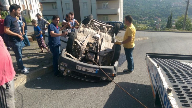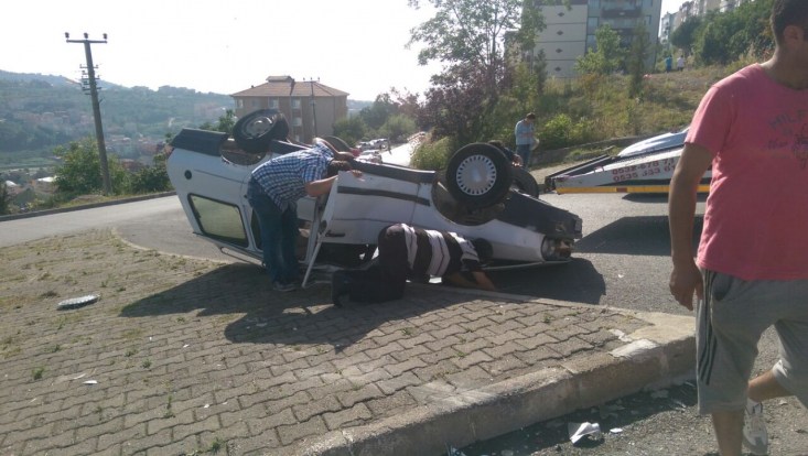 Kaza Alaplı Tepeköy Yüksek okul kavşağında meydana geldi. Alınan bilgilere göre, 67 SH 278 plakalı otomobil sürücüsü İbrahim Turgut, kavşaktan dönüş yaptığı sırada İbrahim Yavuz'un kullandığı 67 LL 805 plakalı otomobil ile çarpıştı. Kazda İbrahim Turgut'un kullandığı otomobil takla atarken, kazada yaralanan sürücü Turgut'un yardımına çevredeki vatandaşlar koştu. Olay yerine gelen sağlık ekipleri ve vatandaşlar ile birlikte arabadan çıkarılan Turgut, yapılan ilk müdahalenin ardından Alaplı Devlet hastanesine kaldırıldı. Kazada hasar gören araçlar çekici ile kaldırılırken, trafiğe kapanan yol araçların kaldırılmasıyla birlikte yeniden trafiğe açıldı. Polis kazayla ilgili tahkikat başlattı.