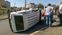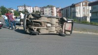 OTOMOBİLLER ÇARPIŞTI, BİRİ TAKLA ATTI