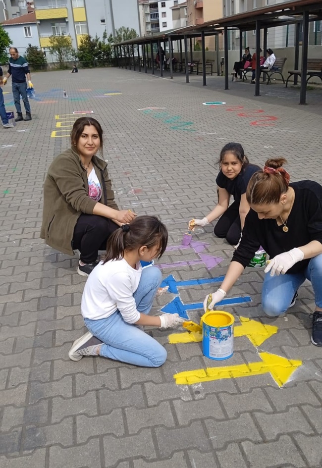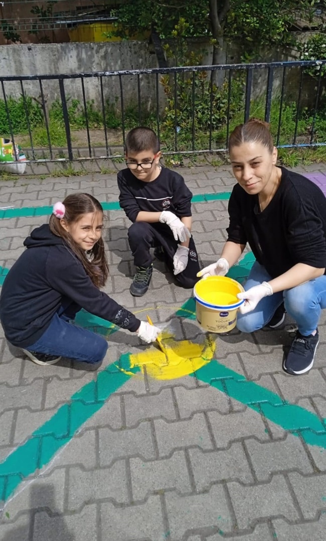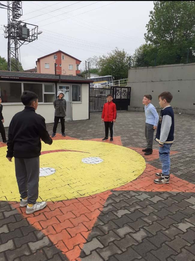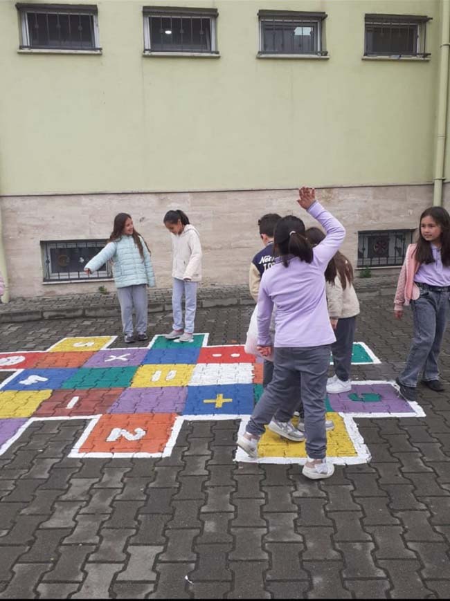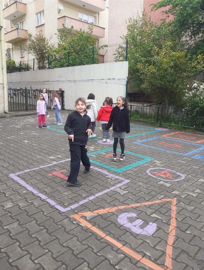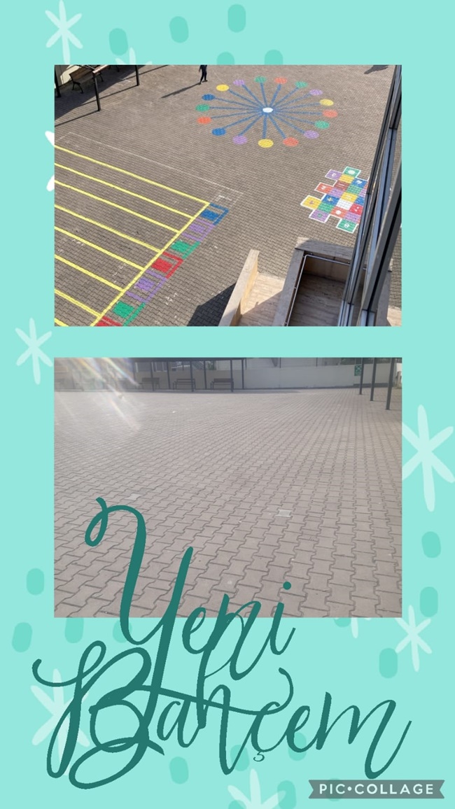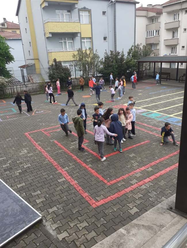 Harezmi programı 2. Ekip öğretmenleri Serap Gündoğdu, Hatun Kara Girgin, Berat Baş ve sorumlu Müdür yardımcısı Tuğba Topaloğlu önderliğinde ve okul idaresinin desteklediği projenin son basamağı okul bahçesine oyun alanları çizimi gerçekleştirildi" denildi.