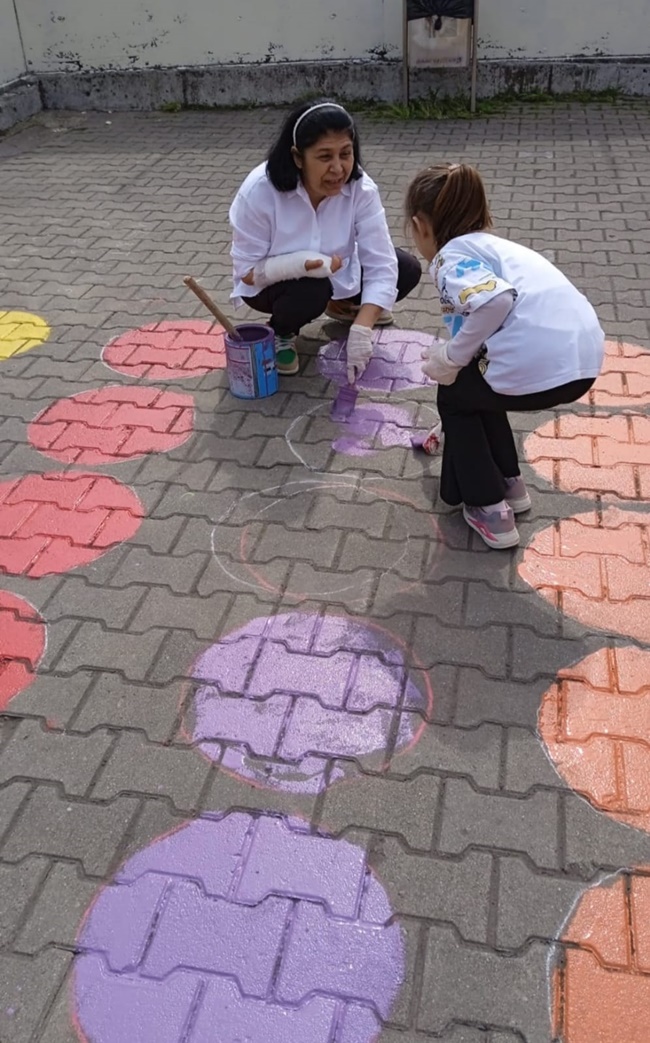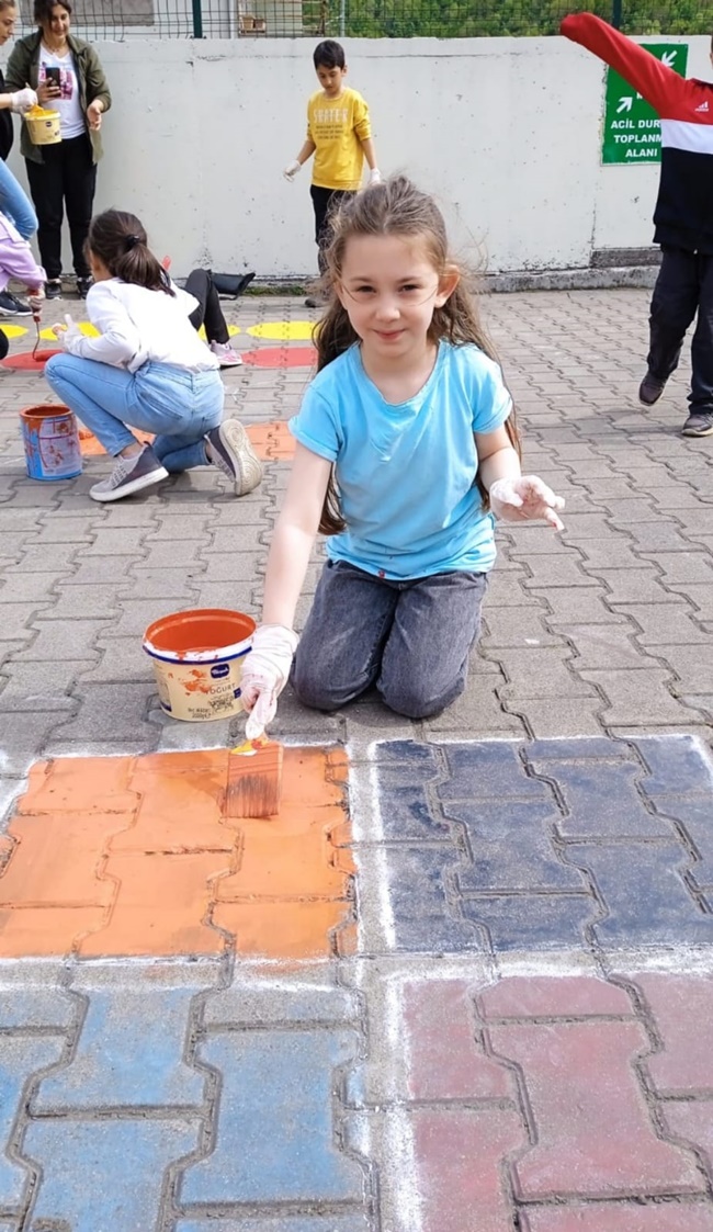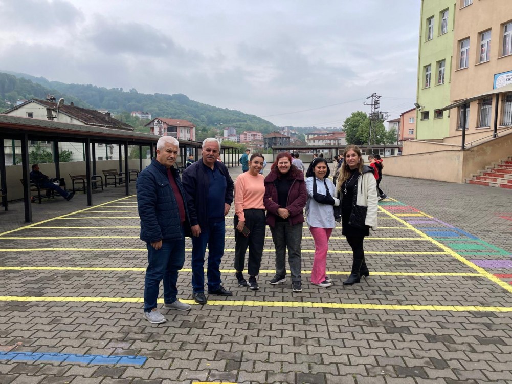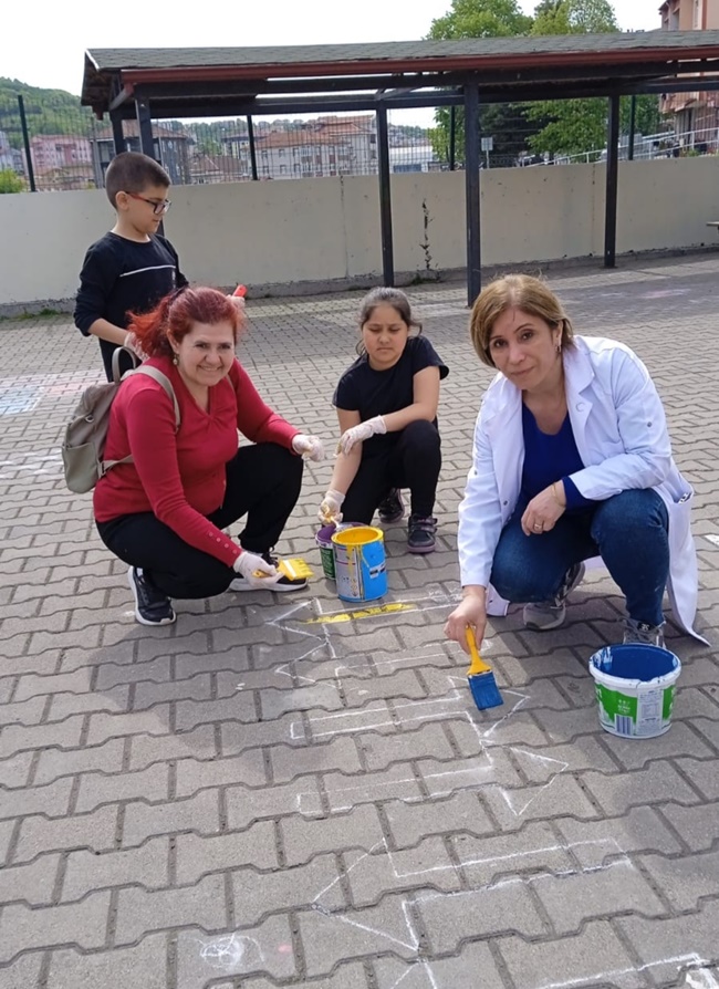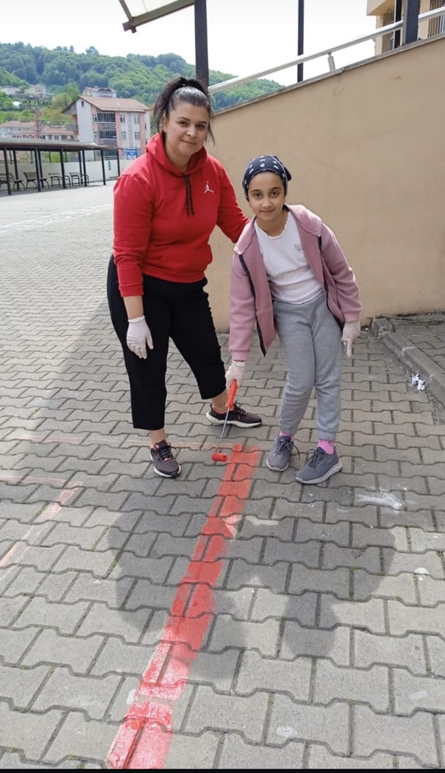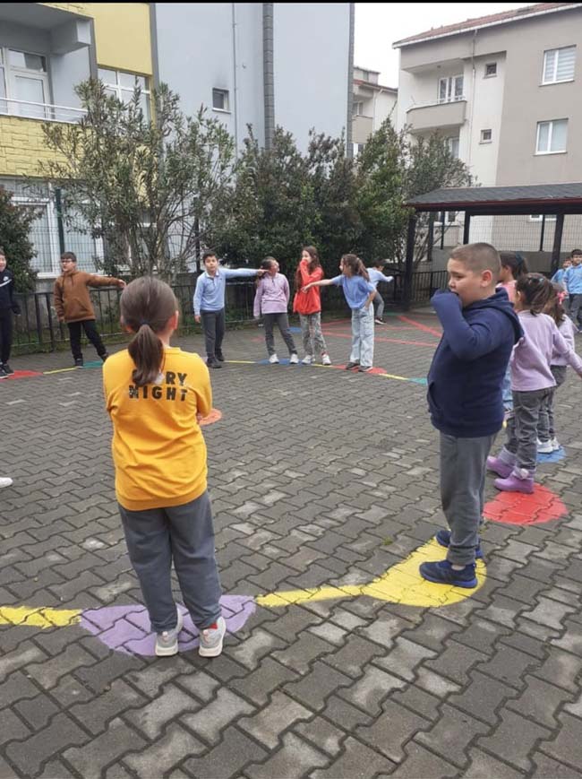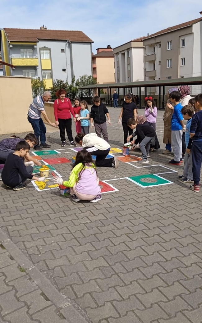 Harezmi programı 2. Ekip öğretmenleri Serap Gündoğdu, Hatun Kara Girgin, Berat Baş ve sorumlu Müdür yardımcısı Tuğba Topaloğlu önderliğinde ve okul idaresinin desteklediği projenin son basamağı okul bahçesine oyun alanları çizimi gerçekleştirildi" denildi.