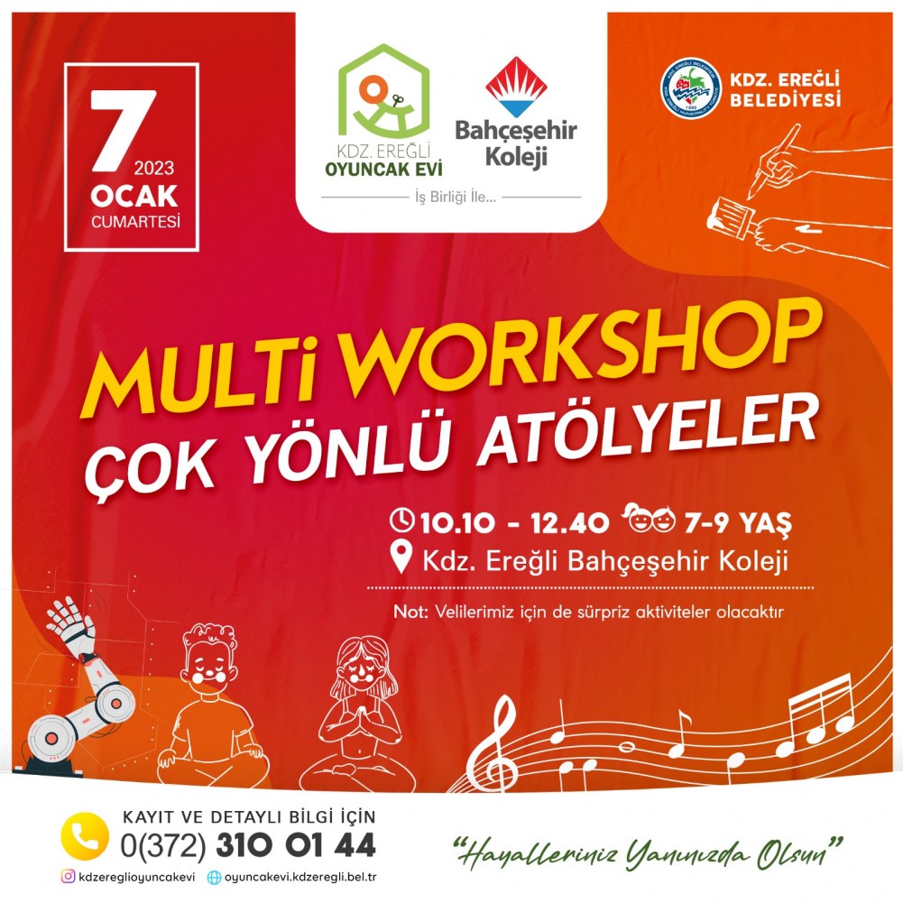 Kdz.Ereğli Belediyesi Oyuncak Evi ve Kdz.Ereğli Bahçeşehir Koleji iş birliği ile planlanan farklı alanlarda birçok etkinliği içinde barındıran çalışmamız heyecanla sizleri bekliyor…