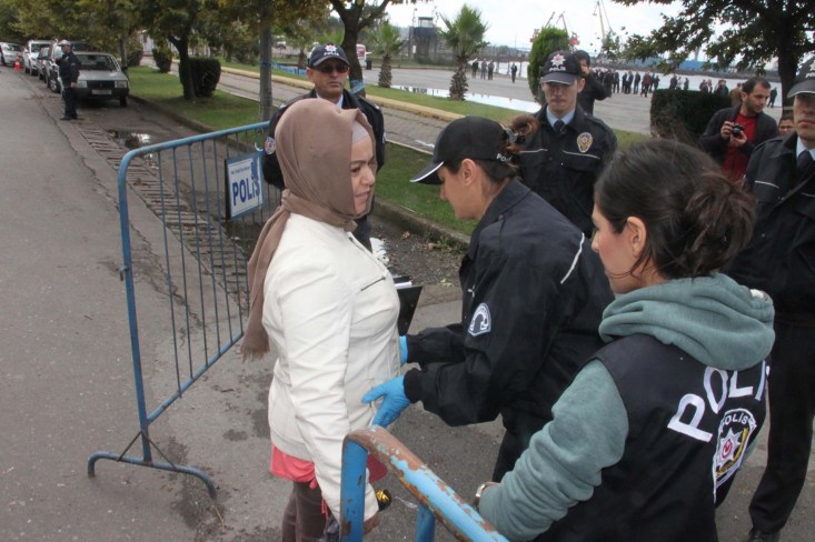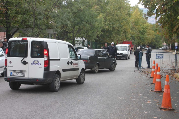 geniş güvenlik önlemi aldı. Fabrika işçileri hariç hiç bir araç eylem alanına