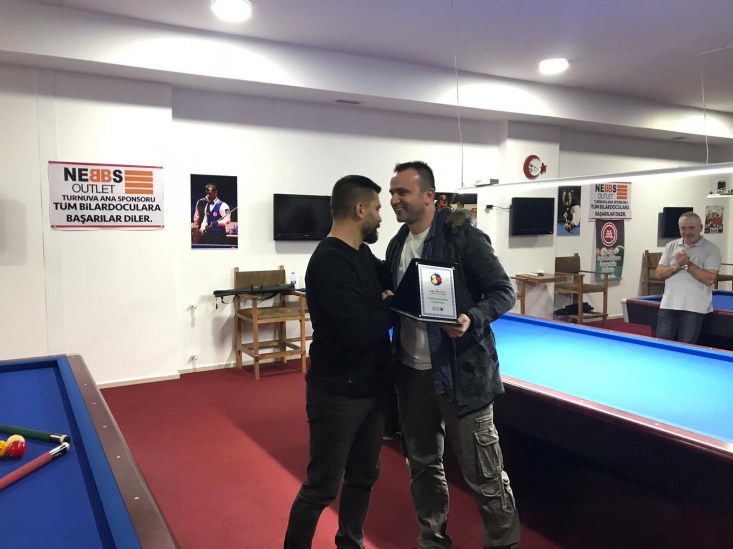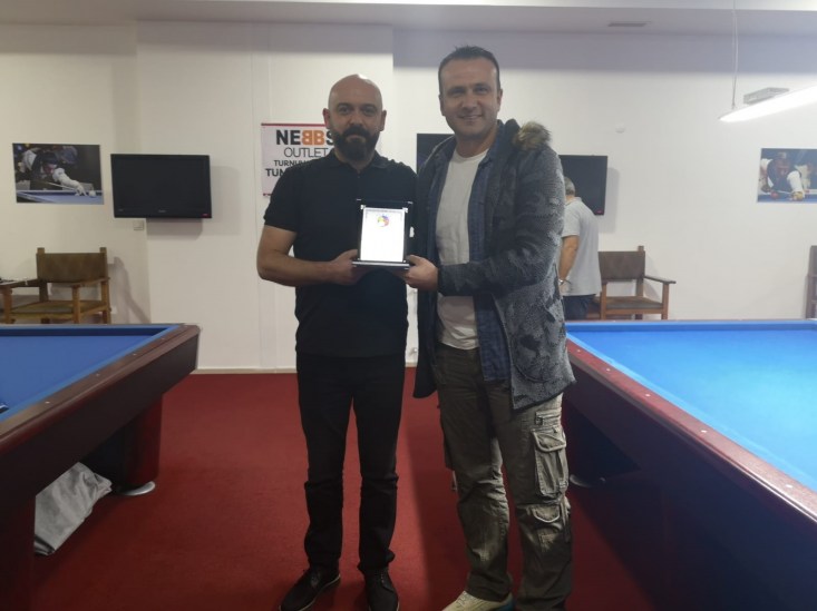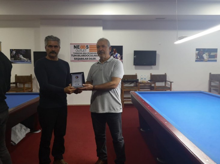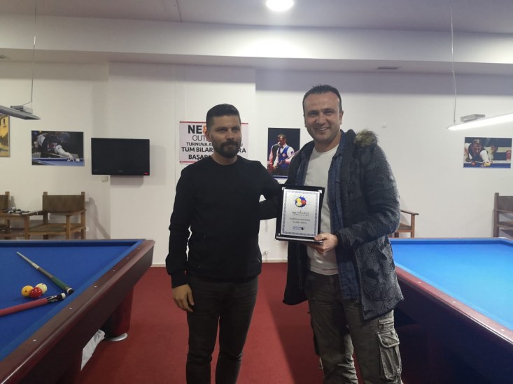 hazırlatılan plaketi, İlçe Bilardo Organizasyon Komitesi başkanı Tahir