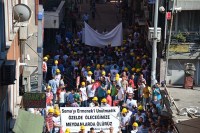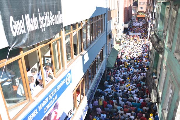 Genel Maden İşçileri Sendikası önünde toplanan binlerce maden işçisi Madenci Anıtı önüne yürüdü. Zonguldak Emniyet Müdürlüğü, geniş güvenlik önlemleri aldı. Maden işçilerinin yanı sıra esnaflar ve vatandaşlar da eyleme destek verdi.