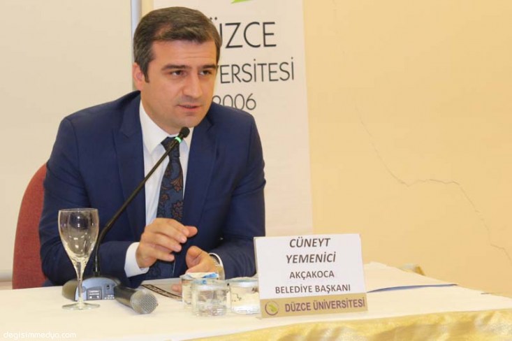 Üniversiteli öğrencilerle gerçekleşen söyleşinin konuğu olan Belediye Başkanı Cüneyt Yemenici gerçekleştirdiği konuşmasında şu sözlere yer verdi : " Üniversitemizle her zaman bir bağımız var, yöneticilerimizle sürekli iletişim içerisindeyiz. Üniversitemizden gelen talepleri eksiksiz yerine getirmeye çalışıyoruz. Tabi sosyal ihtiyaçlar hiçbir zaman bitmiyor, benim üniversiteli arkadaşlarımıza bakış açım şu ; hesap yaparken bazen öğrencilere ekonomik girdi olarak bakılıyor, şunu açık yüreklilikle söylüyorum ben kesinlikle ekonomik girdi olarak bakmıyorum sizlere, kardeşlerime. Şöyle bakmak lazım ben burda en iyi şekilde eğitim hayatınızı tamamlayıp bir hemşeri duygusu içerisinde sizleri Akçakocalı olarak gönderirsek belki devlette belki özelde önemli yerlere geldiğinizde Akçakoca'yı vatanı olarak bildiğinde işte asıl kazanç o zaman başlayacak Akçakoca açısından. Siz Akçakoca'nın en önemli değerlerisiniz, buradan sizleri memleketi olarak uğurlarsak kendimizi şanslı hissedeceğiz" diye belirtti.