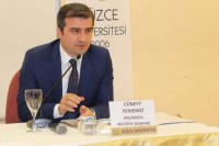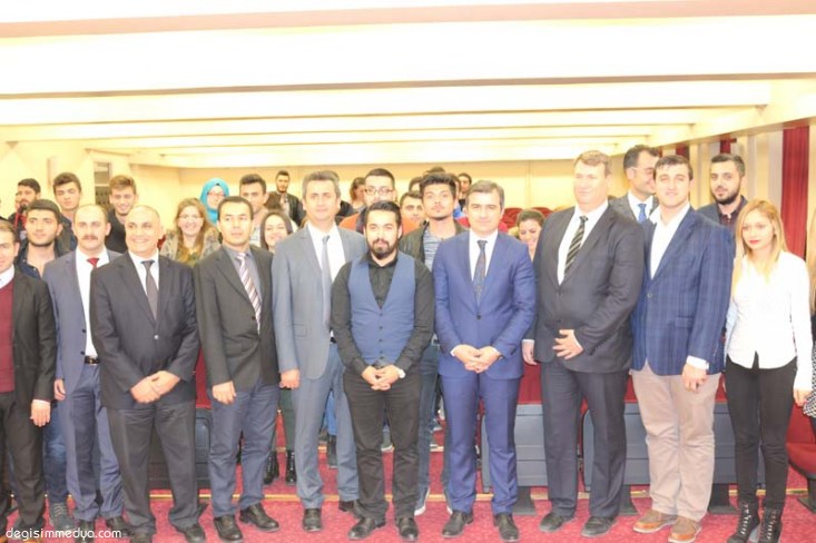 Belediye Başkanı Cüneyt Yemenici'nin konuşmasının ardından İlçe Kaymakamı Mehmet Özer söz aldı ve konuşmasında çok anlamlı iki şiir okudu, geçmişte kamuya işi düşen vatandaşın durumu ile bugün kamuya işi düşen vatandaşın arasındaki farkın büyüklüğüne dikkat çekti ve konuşmasında şu sözlere değindi " Belediye Başkanı arkadaşımız Cüneyt Yemenici sizin karşınıza seçilmiş bir iradeyle geldi ilçenin temsilcisi olarak 2014 - 2019 yılları arasında ilçenin mahalli müşterek ihtiyaçlarını karşılamak amacıyla seçildi ve seçildiği günden bu tarafa da faaliyetlerini icra ediyor. Bende 1 Ağustos itibariyle göreve başladım, bende şuan etrafa bakıyorum, üniversite ne yapıyor, belediye ne yapıyor, diğer kurumlar ne yapıyor diye inceliyor, neler yapılmış, neler yapılacak bunları gözlemliyorum." diye konuştu. Gerçekleşen konuşmaların ardından, İlçe Kaymakamı Mehmet Özer ve Belediye Başkanı Cüneyt Yemenici öğrencilerden gelen soruları cevapladılar, karşılıklı bilgi alışverişinde bulundular ve öğrencilerden gelen talepleri, önerileri aldılar.